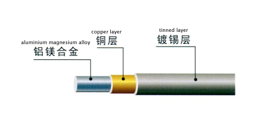 CCAM wire is a new generation high strength product, which promotes on the basis of CCA wire. It adopts aluminium magnesium alloy as the core and plates copper layer concentrically on the surface. Its electrical and mechanical properties are between copper wire and aluminium magnesium alloy wire. It possesses the good conductibility of copper wire, and light weight and good shielding property of aluminium magnesium alloy wire.